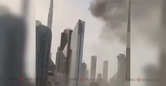 ദുബായ് വീണ്ടും ദുരന്തം: ബുർജ് ഖലീഫയുടെ പശ്ചാത്തലത്തിൽ കെട്ടിടങ്ങൾക്ക് മുകളിൽ പുക ഉയരുന്നത് കാണാം