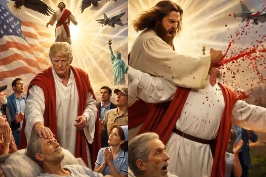 ട്രംപിന്റെ ഇപ്പോൾ ഇല്ലാതാക്കിയ എഐ ഇമേജിനെതിരായ പ്രതിഷേധത്തിനിടയിലാണ് പ്രതികരണം, അദ്ദേഹത്തെ ഒരു ദിവ്യ രോഗശാന്തിക്കാരനായി കാണിച്ചതിനെതിരെ യാഥാസ്ഥിതിക ഗ്രൂപ്പുകളിൽ നിന്ന് പോലും ദൈവനിന്ദയും വിമർശനവും ഉയർന്നുവന്നിട്ടുണ്ട്.