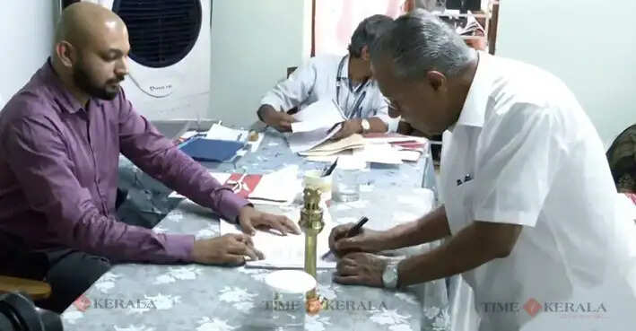കേരള മുഖ്യമന്ത്രി പിണറായി വിജയൻ വ്യാഴാഴ്ച ധർമ്മടം നിയമസഭാ മണ്ഡലത്തിൽ നിന്ന് നാമനിർദ്ദേശ പത്രിക സമർപ്പിച്ചു.