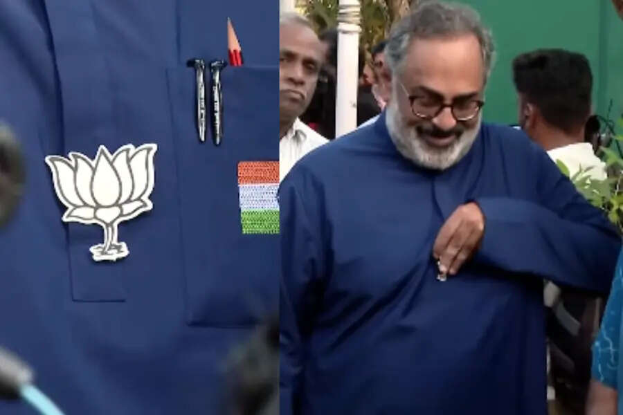 വോട്ടർമാർ പാർട്ടി ചിഹ്നം ഷർട്ടിൽ നിന്ന് നീക്കം ചെയ്തതിനെ തുടർന്ന് രാജീവ് ചന്ദ്രശേഖർ പാർട്ടി ചിഹ്നം നീക്കം ചെയ്തു