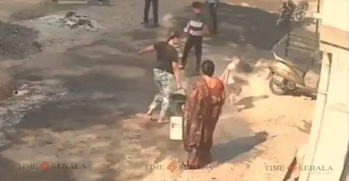 ഹോളി കളർ സ്പ്രേയെ ചൊല്ലി ദേഷ്യപ്പെട്ട മുത്തശ്ശി കുട്ടിയുടെ മേൽ തിളച്ച വെള്ളം എറിയുന്നത് സിസിടിവിയിൽ കാണാം