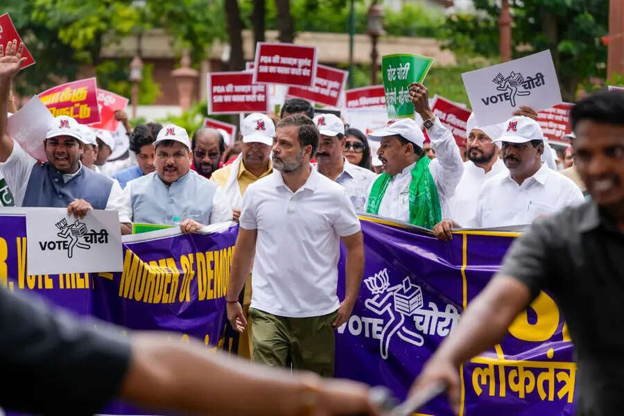 കോൺഗ്രസിന്റെ 'വോട്ട് ചോറി' പ്രതിഷേധത്തിൽ 'മോദി തേരി കബ്ര ഖുദേഗി' പ്രതിധ്വനിക്കുന്നു, പൊതുജനങ്ങളുടെ എതിർപ്പ് ഉണ്ടാകുമെന്ന് ബിജെപി മുന്നറിയിപ്പ് നൽകുന്നു