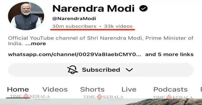 നരേന്ദ്ര മോദി 30 ദശലക്ഷം യൂട്യൂബ് സബ്സ്ക്രൈബർമാരെ മറികടന്നു, പ്ലാറ്റ്ഫോമിൽ ഏറ്റവും കൂടുതൽ പിന്തുടരുന്ന ആഗോള നേതാവായി മാറി