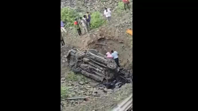 ഡൽഹി-മുംബൈ എക്സ്പ്രസ് വേയിൽ നിയന്ത്രണം നഷ്ടപ്പെട്ട് കുഴിയിലേക്ക് മറിഞ്ഞ് XUV700; 5 പേർ മരിച്ചു