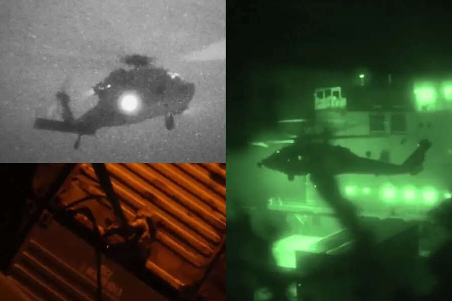 ഇറാനിയൻ പതാകയുള്ള ചരക്ക് കപ്പലായ ടൗസ്കയിൽ അറബിക്കടലിൽ യുഎസ് മറൈൻ സൈനികർ തന്ത്രപരമായി കയറുന്നത് കാണിക്കുന്ന നാടകീയമായ ദൃശ്യങ്ങൾ യുണൈറ്റഡ് സ്റ്റേറ്റ്സ് സെൻട്രൽ കമാൻഡ് (CENTCOM) പുറത്തുവിട്ടു.